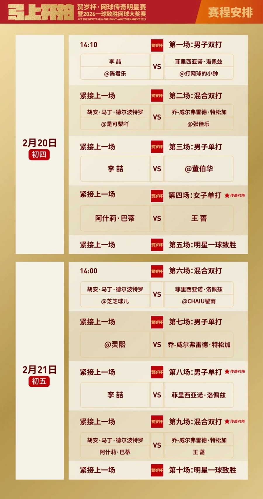 贺岁杯·网球传奇明星赛赛程。
