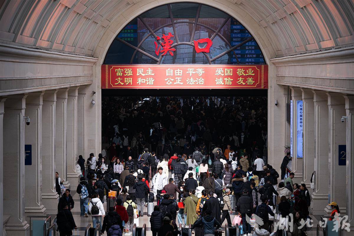 2月22日,正月初六,抵达汉口火车站的旅客有序出站。(湖北日报全媒记者 任勇 通讯员 秦涛 宋萍 摄)