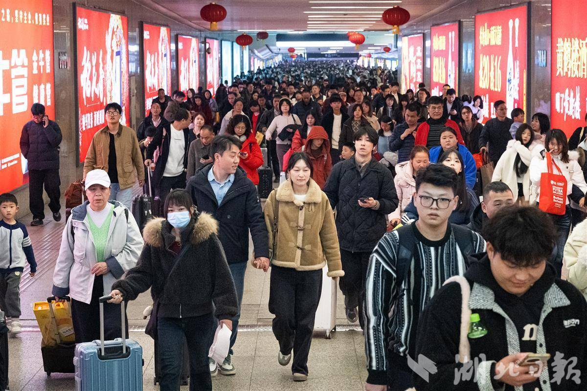 2月22日,正月初六,旅客在汉口火车站准备乘坐火车返程。(湖北日报全媒记者 任勇 通讯员 秦涛 宋萍 摄)
