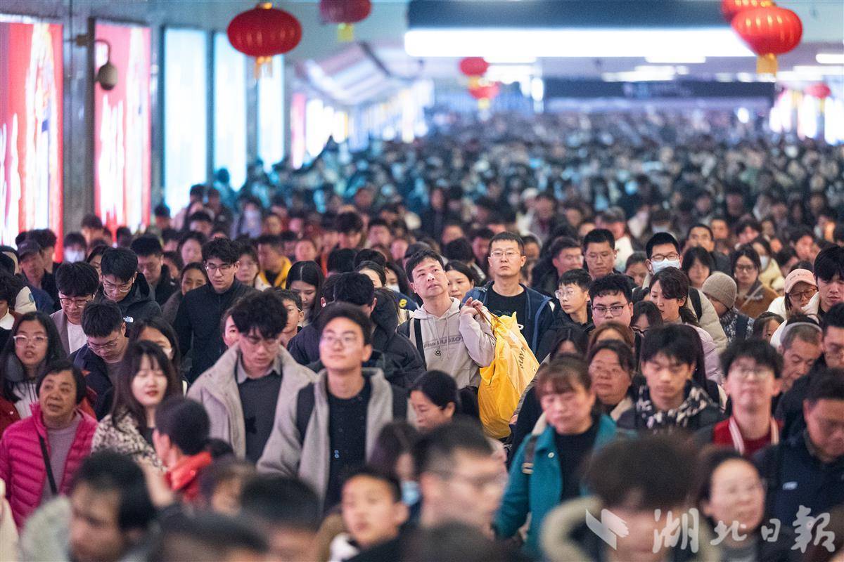 2月22日,正月初六,随着春节假期进入尾声,武汉铁路迎来返程客流高峰。汉口火车站出口廊道内人头攒动,旅客们拖着大包小包抵达武汉,准备收拾好心情,元气满满地迎接新一年的工作。