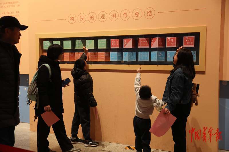 2月28日上午,中国工艺美术馆(中国非物质文化遗产馆),两名小朋友在学习传统文化中的物候与节气。中青报·中青网记者 孔斯琪/摄