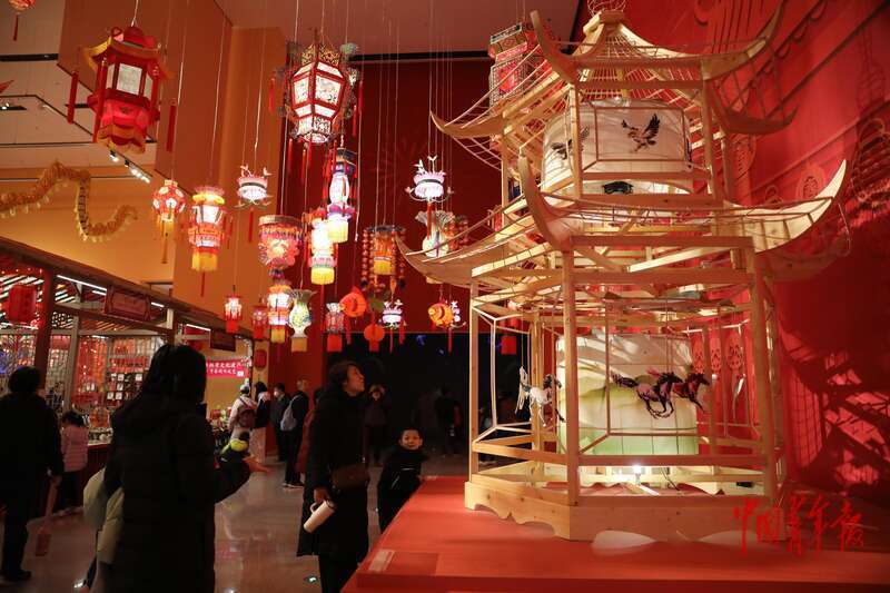 2月28日上午,中国工艺美术馆(中国非物质文化遗产馆),观众在观看展品《走马灯》。中青报·中青网记者 孔斯琪/摄
