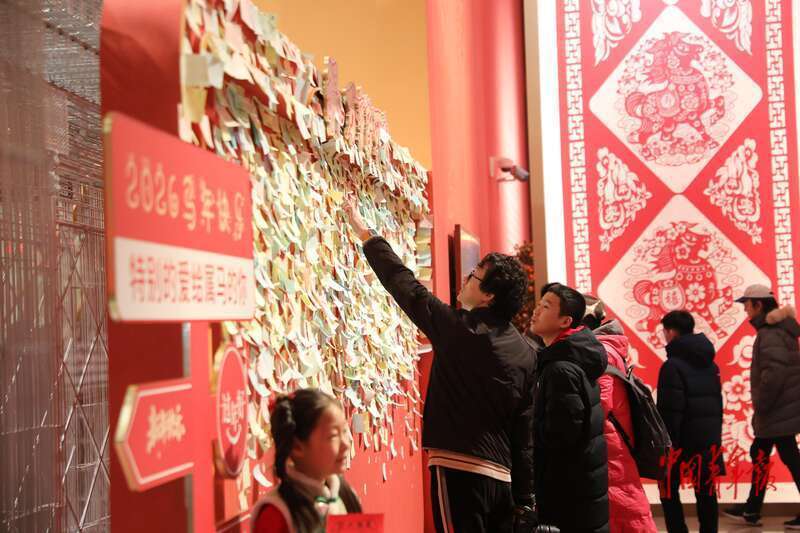 2月28日上午,中国工艺美术馆(中国非物质文化遗产馆),观众在马年留言板前驻足。中青报·中青网记者 孔斯琪/摄
